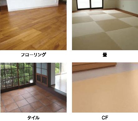 フローリングの他、畳やクッションフロア、カーペット、畳等